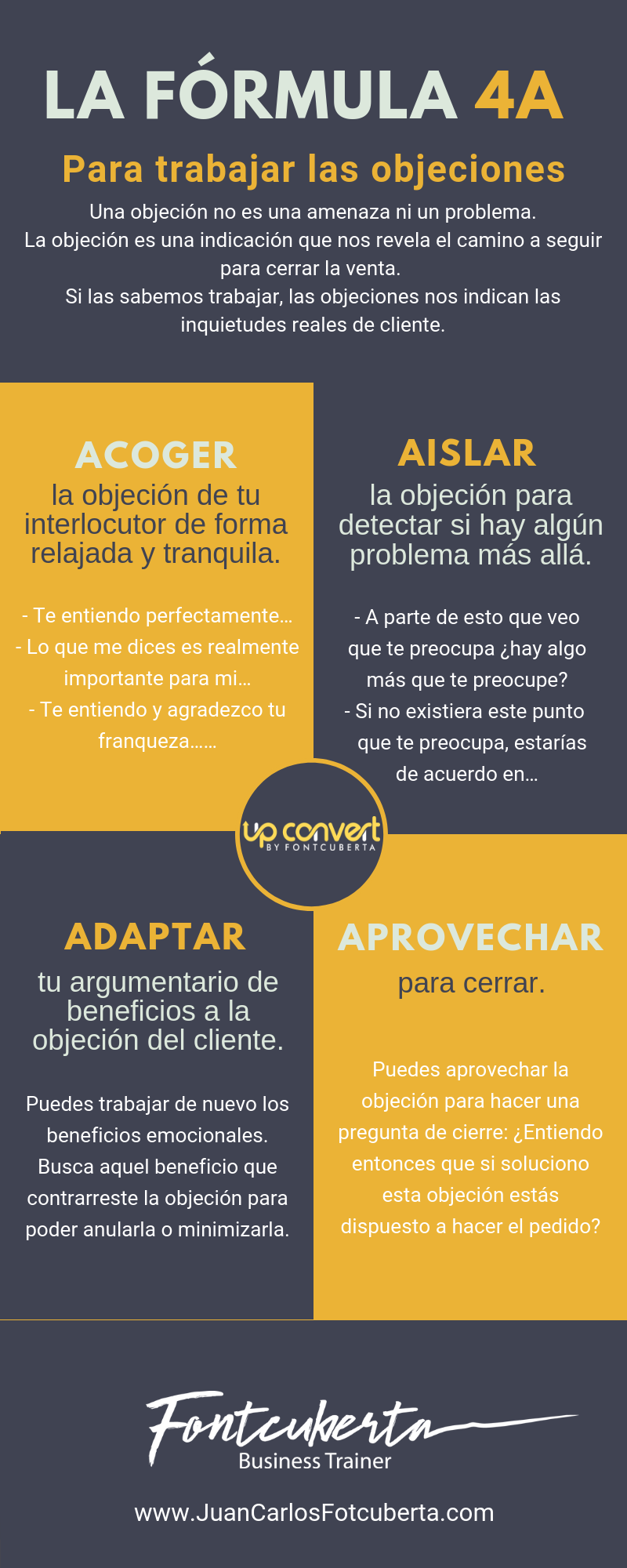 Es una variación de nuestra Fórmula 4A para el manejo de objeciones: La Fórmula APC2A:
